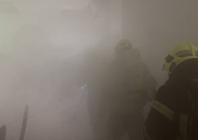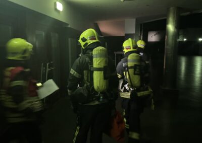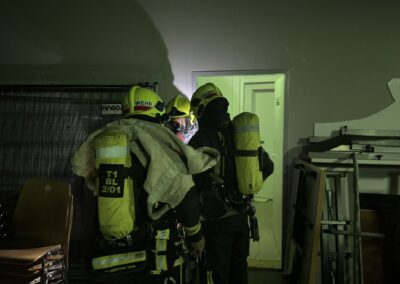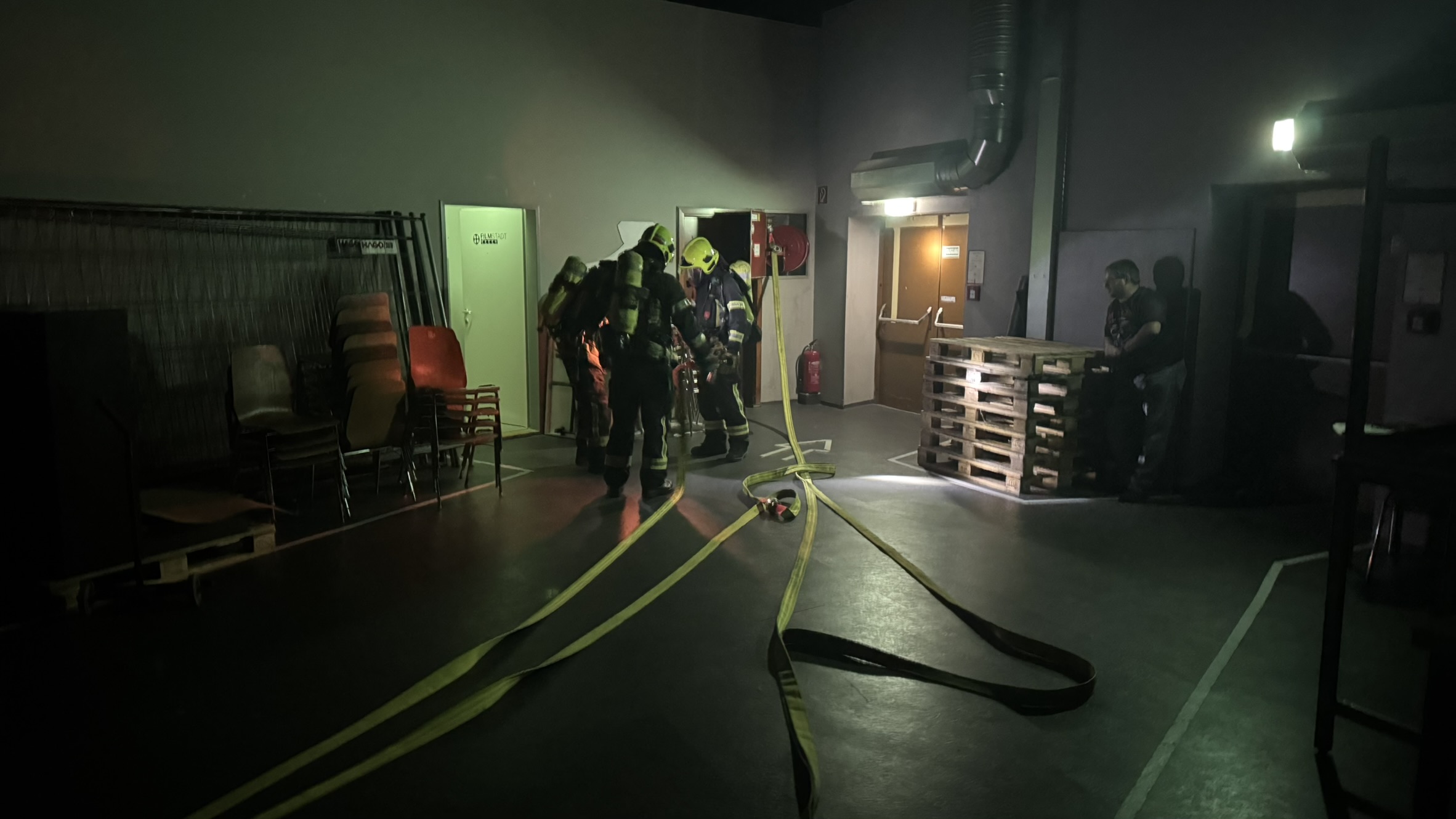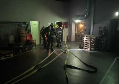 Es wurde zu einem Brandmeldealarm alarmiert und in Folge der Erkundung des Einsatzleiters die Alarmstufe, aufgrund des bestätigten Brandes, erhöht und somit weitere Kräfte nachalarmiert. Der erste Trupp setzte einen Rauchvorhang um die Rauchausbreitung in andere Räumlichkeiten zu verhindern und machte sich mit einer Schlauchleitung auf dem Weg zur Menschenrettung. Kurze Zeit später folgte bereits der Trupp unseres Tank II und unterstützte den ersten Trupp , der dritte Atemschutztrupp stellte den Rettungstrupp. Während der Arbeiten im Brandraum wurde ein Atemschutznotfall simuliert welcher erforderlich machte, dass nun auch der Rettungstrupp sich hinter die Rauchgrenze begab. Die eingesetzten Trupps konnten ihre Arbeiten, gemäß unseres professionellen Ausbildungsstands, solide meistern. In Folge wurden die Räumlichkeiten mittels Druckbelüftungsgeräts belüftet und rauchfrei gemacht.