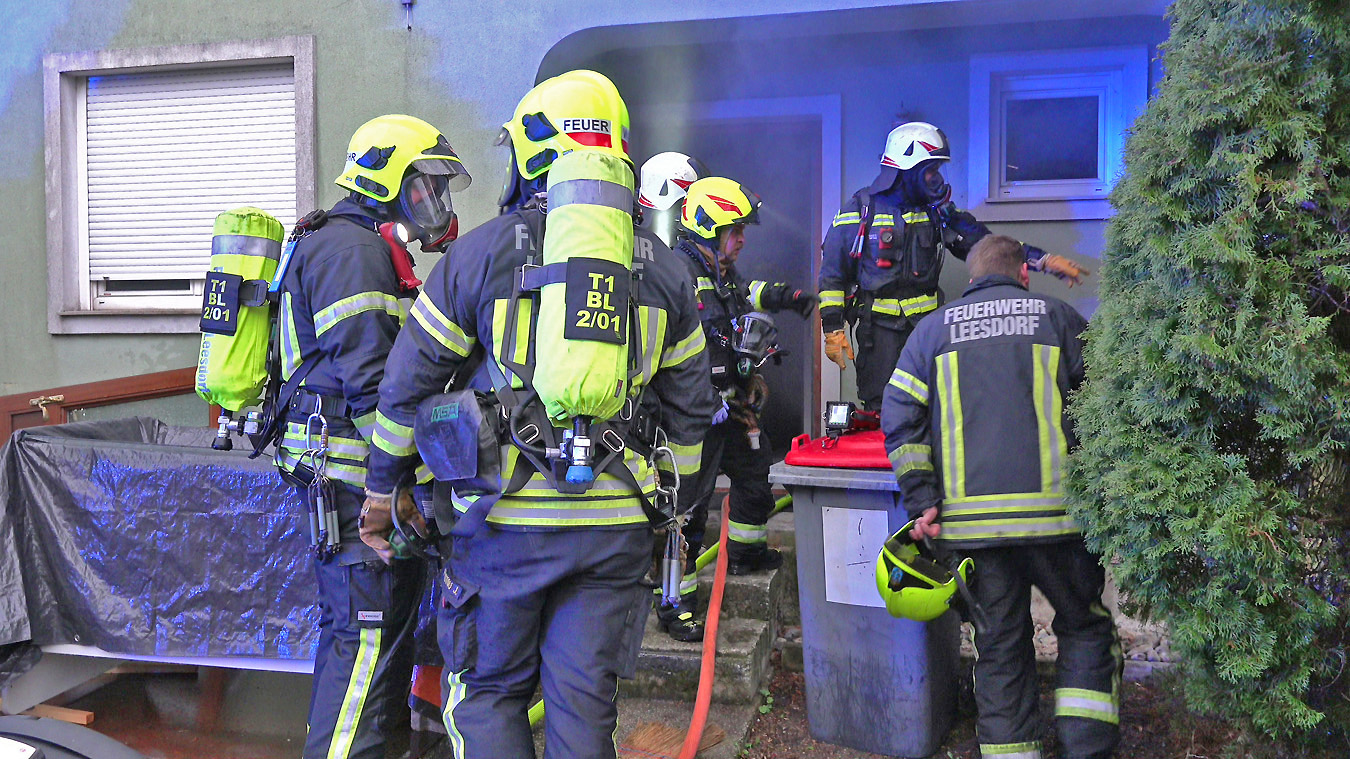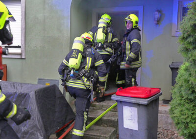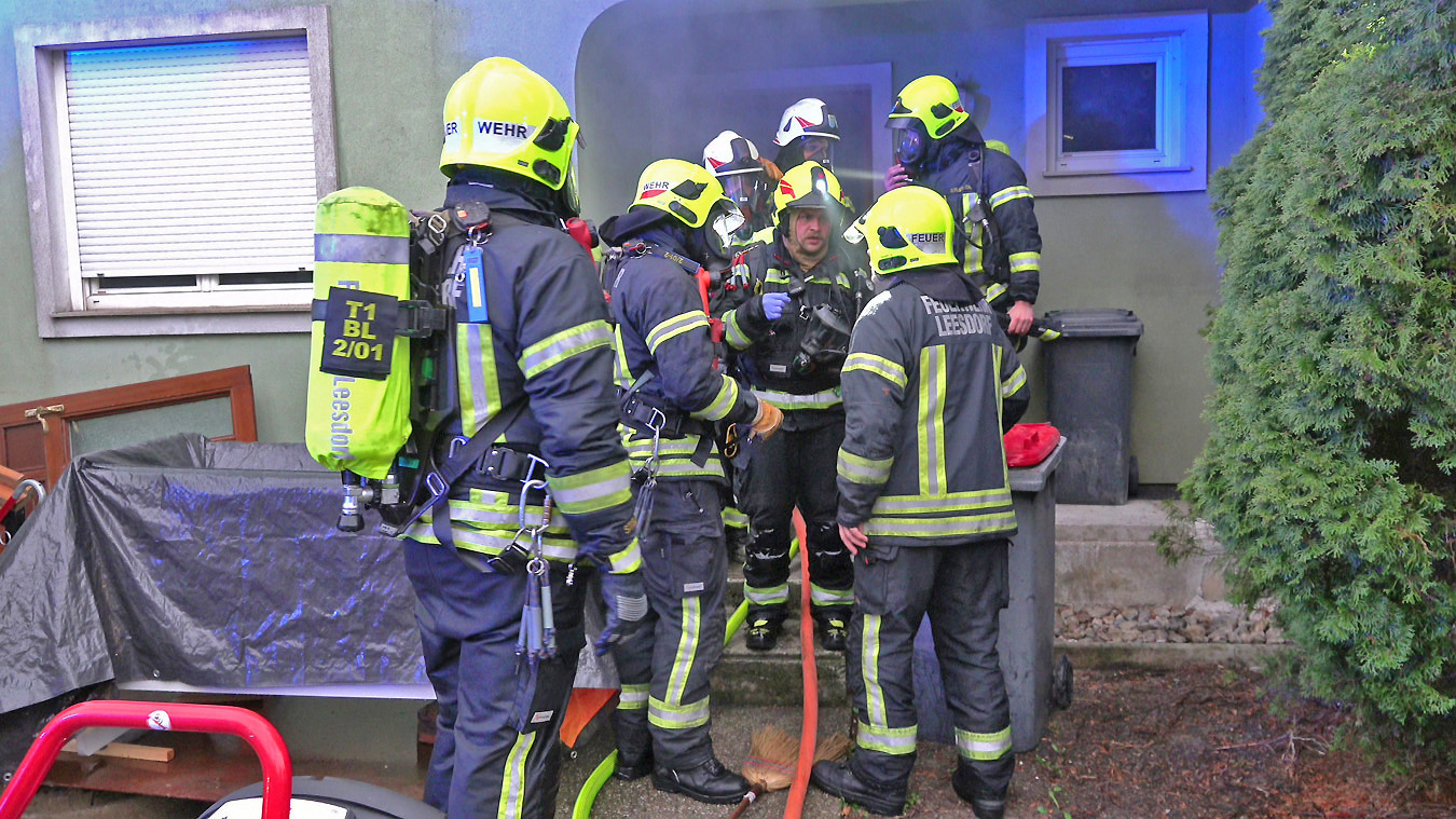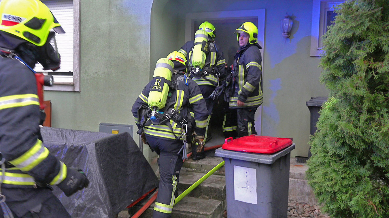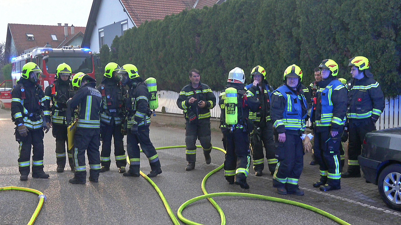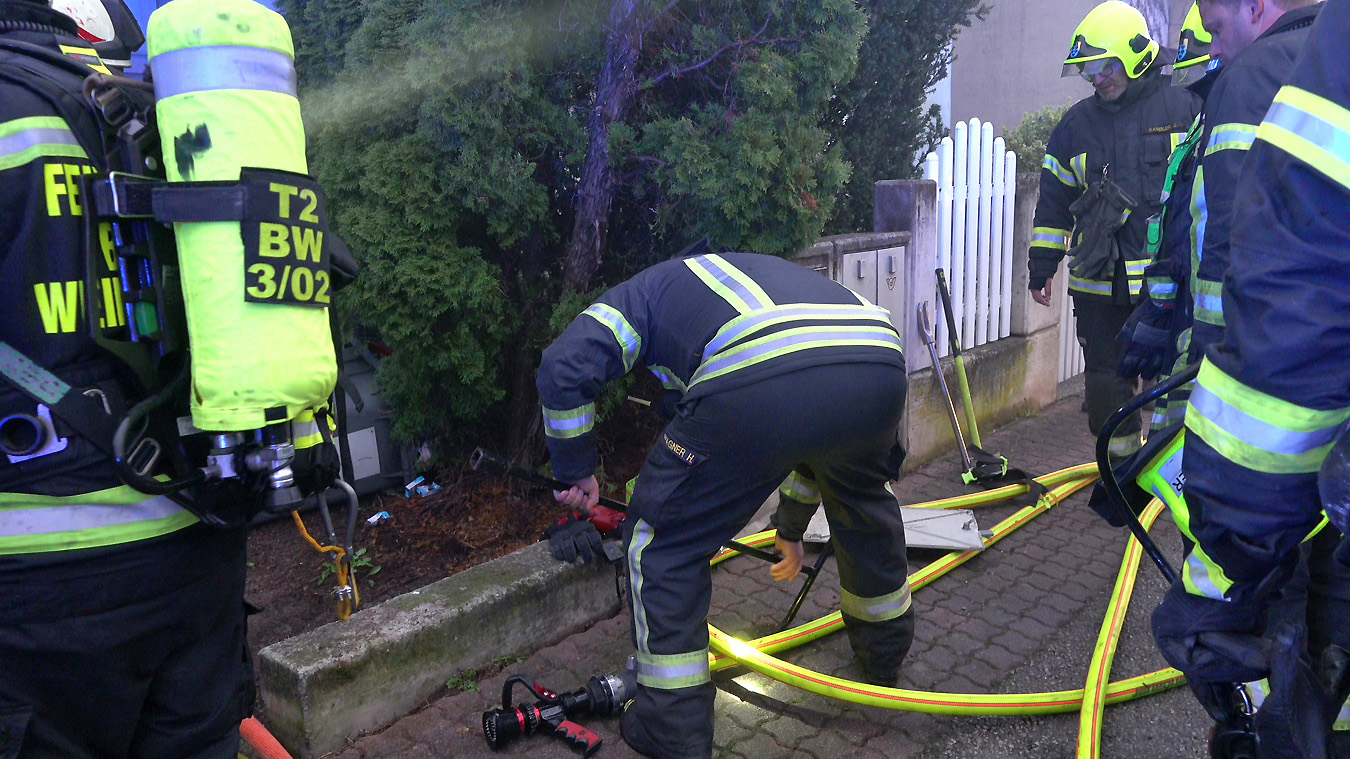 Bei Eintreffen der alarmierten Einsatzkräfte befanden sich alle Hausbewohner im Freien und informierten den Feuerwehreinsatzleiter Kommandant Stellvertreter Andreas Walter (FF Baden-Leesdorf), dass es im Keller bei der Gasheizung brennt. Zu dem Zeitpunkt war über die offene Eingangstüre bereits eine starke Verrauchung auch im Erdgeschoß des Reihenhauses wahrnehmbar.