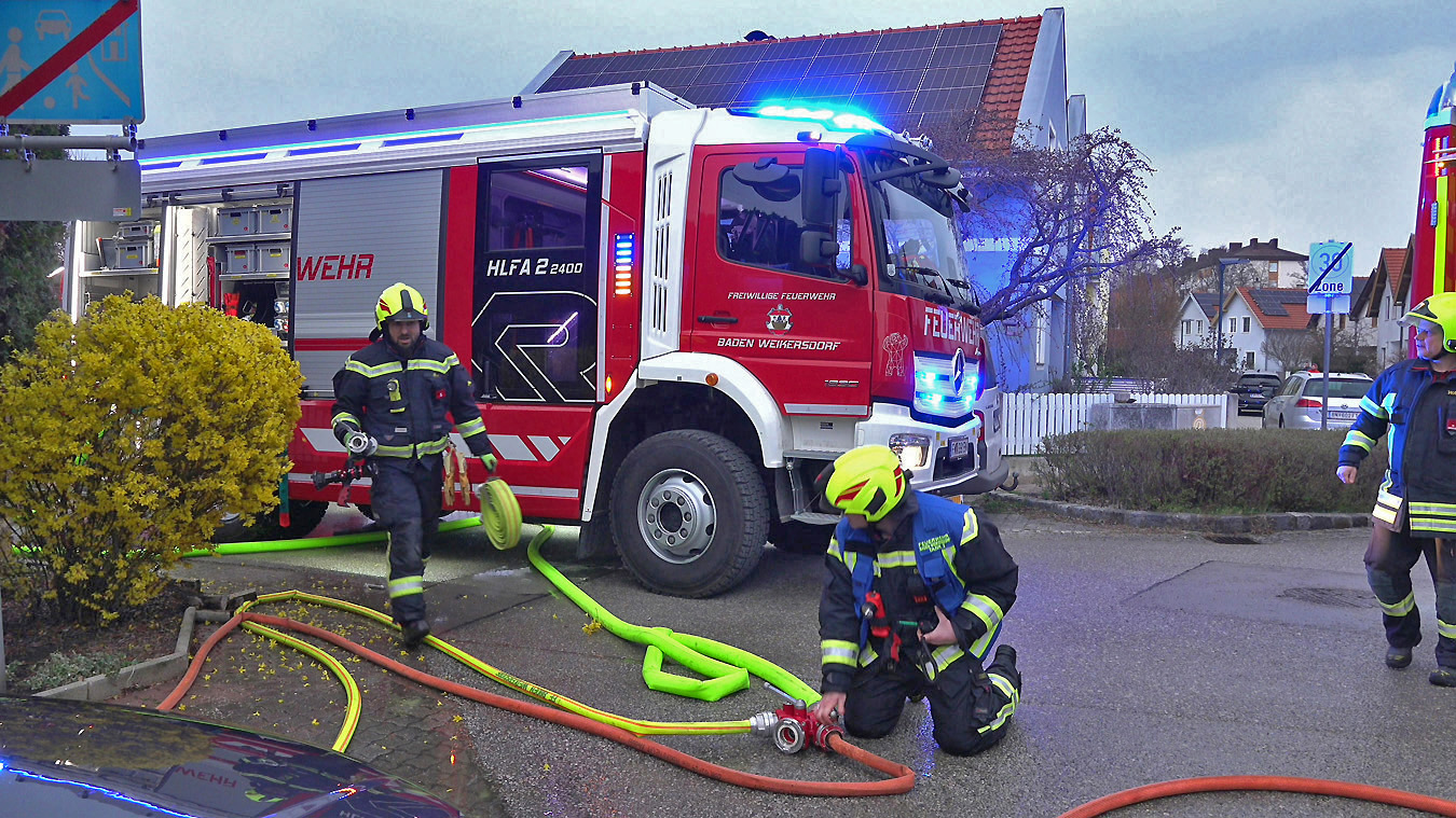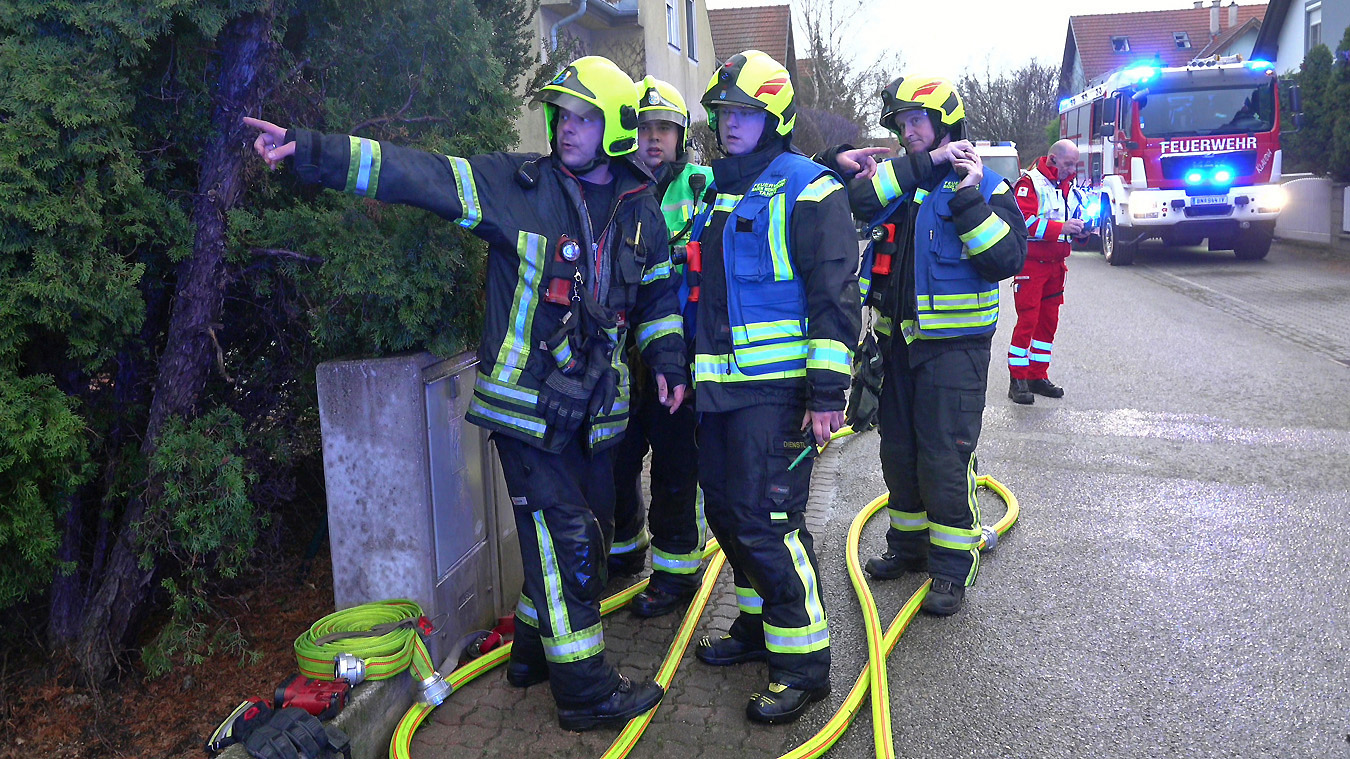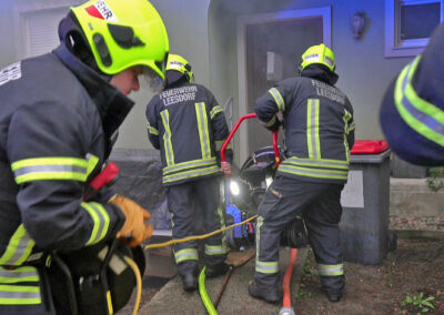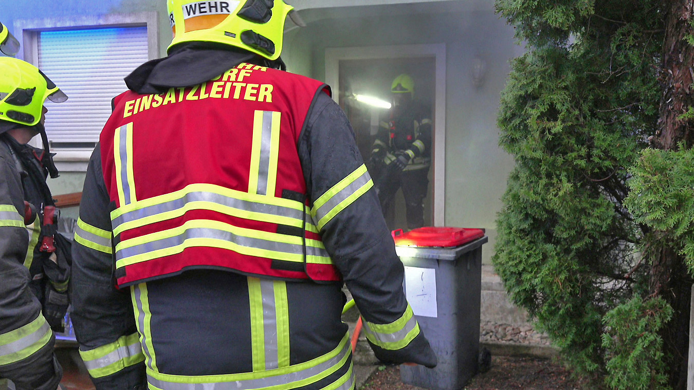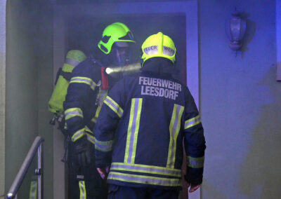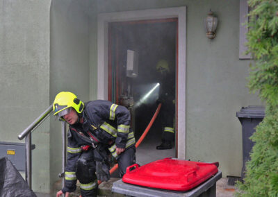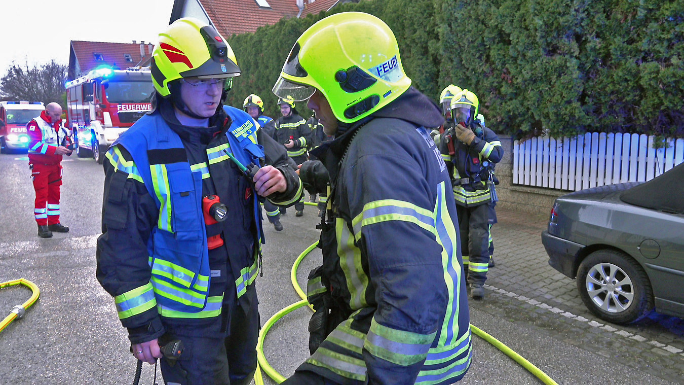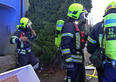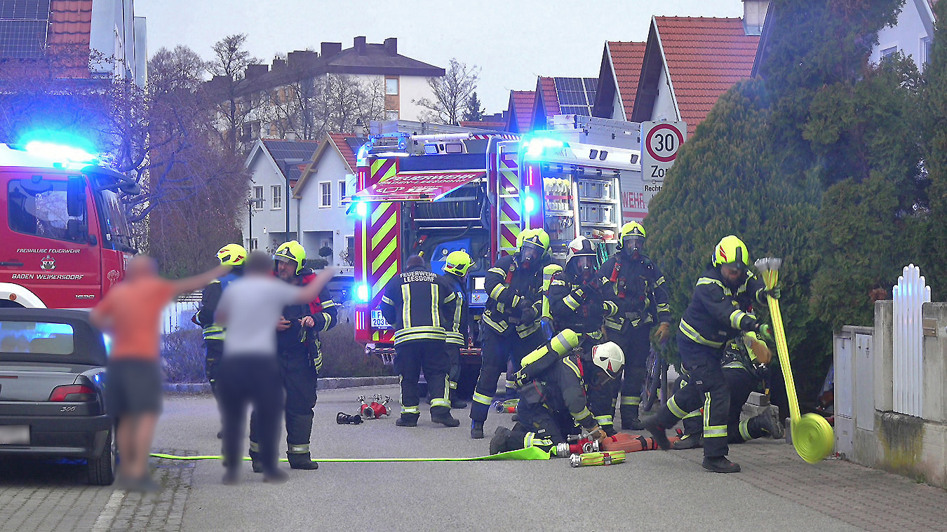 Bei Eintreffen der alarmierten Einsatzkräfte befanden sich alle Hausbewohner im Freien und informierten den Feuerwehreinsatzleiter Kommandant Stellvertreter Andreas Walter (FF Baden-Leesdorf), dass es im Keller bei der Gasheizung brennt. Zu dem Zeitpunkt war über die offene Eingangstüre bereits eine starke Verrauchung auch im Erdgeschoß des Reihenhauses wahrnehmbar.