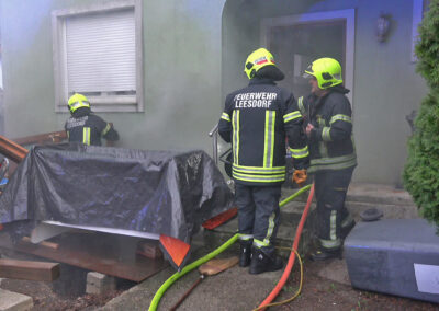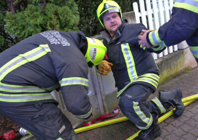 Kurz nach 18 Uhr konnte bereits Brand aus gemeldet werden, jedoch aufgrund des massiven Wasseraustritts durch die beschädigte Wasserleitung im Keller gestalteten sich die Aufräumarbeiten als sehr zeitaufwändig. Mit einer leistungsstarken Schutzwasserpumpe der Feuerwehr gelang es den Keller auszupumpen.