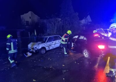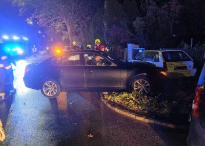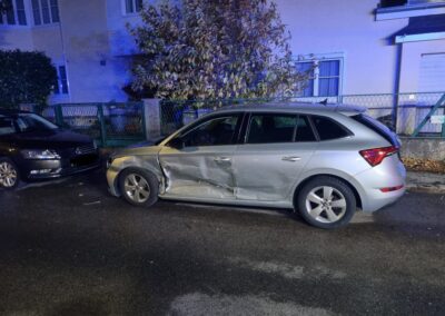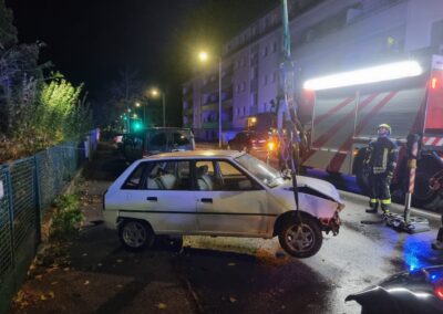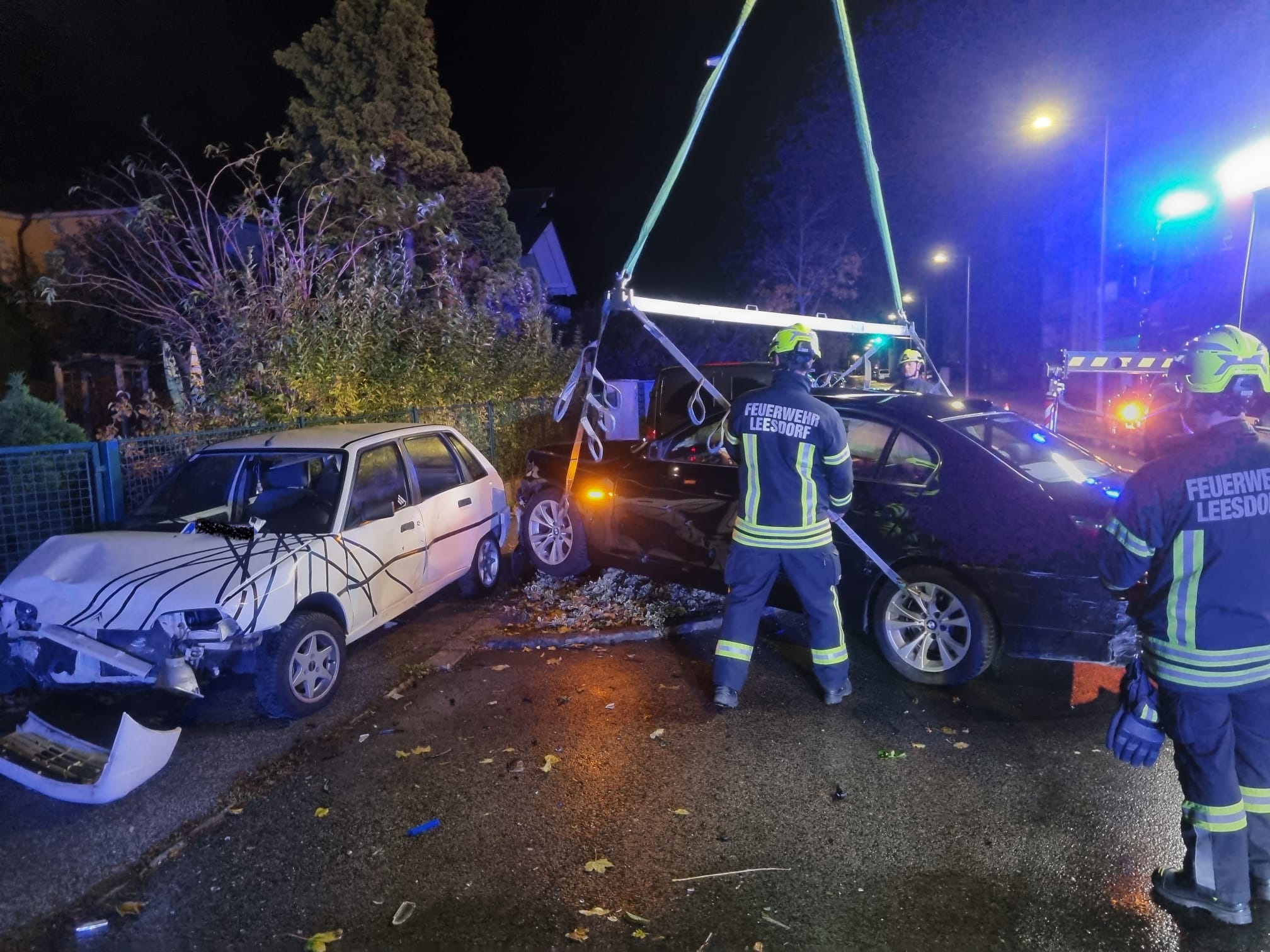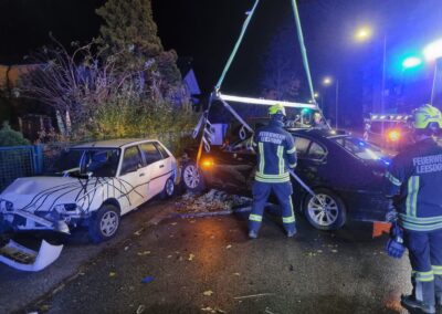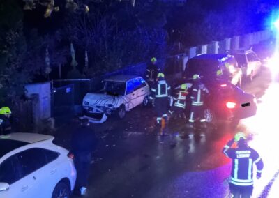 Ca. drei Tage nachdem ein BMW vor dem Feuerwehrhaus ein parkendes Auto gerammt hatte wurden wir in der Nacht des 28. Oktober wieder zu einem ähnlichen Unfall unweit der Feuerwehr alarmiert. Aus unbekannter Ursache touchierte wieder ein BMW diesmal zwei ordnungsgemäß abgestellte PKW. Da es keine Verletzten gab konnte sofort mit der dreifachen Fahrzeugbergung begonnen werden. Alle Autos wurden gesichert abgestellt und die Fahrbahn gereinigt. Nach rund einer Stunde konnte wieder eingerückt werden.